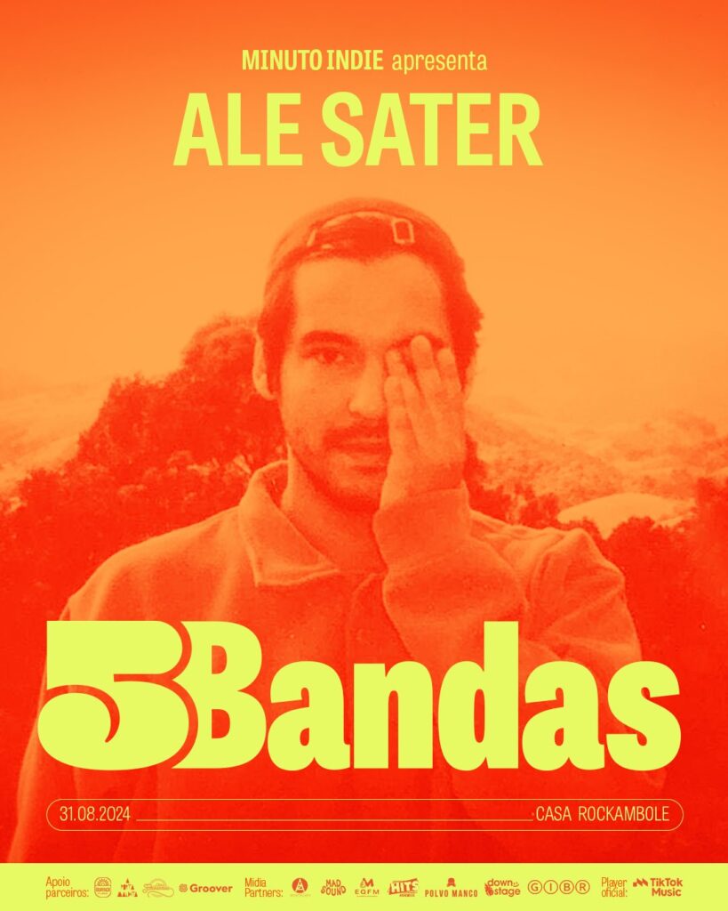 Ale Sater se apresentará no nosso Festival 5 Bandas que acontece no dia 31 de agosto, na Casa Rockambole, em São Paulo. Quer ver um trecho em vídeo? Dá uma conferida no nosso instagram @minutoindie e as informações do festival no @5_bandas