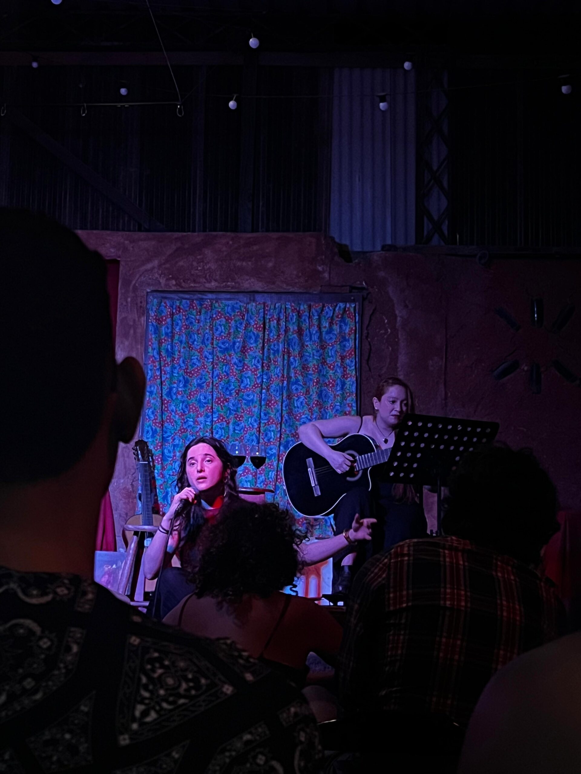 O clima muda rapidamente quando o som do violão de Meena Campelo ecoa pelo Ilêgalpão, na Vila Madalena, zona oeste de São Paulo. Agora, toda a atenção está na música densa e intrigante de Carol Moniz.