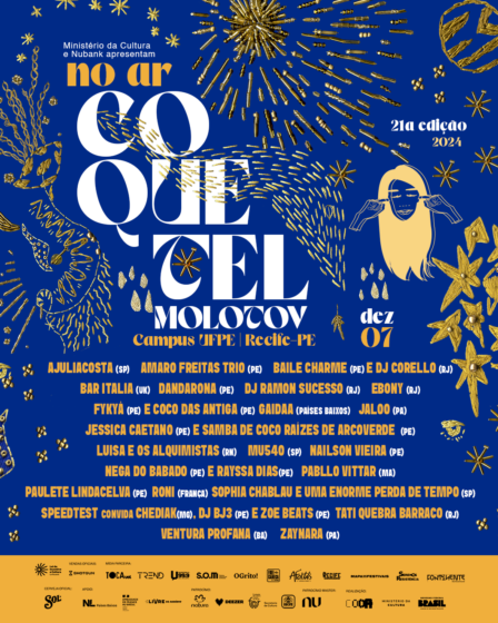 Com protagonismo feminino em 70% das atrações, o Festival No Ar Coquetel Molotov acontece dia 7 de Dezembro no Campus da UFPE, Recife, trazendo Pabllo …